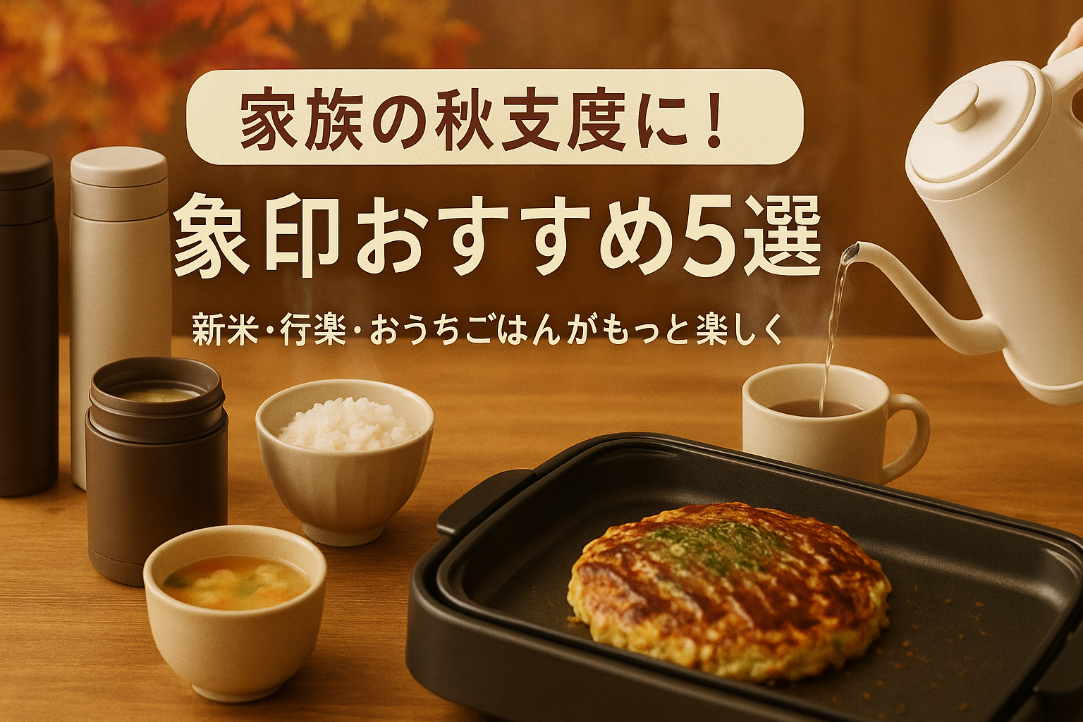 朝晩がひんやりして、あたたかい飲み物や鍋もの、行楽のお弁当がいっそう楽しい季節になりました。とはいえ、家族分の準備は手間がかかりがち。「もっと手軽に、おいしく、みんなで楽しみたい」——そんなご家庭に向けて、本記事では象印の中から秋に“本当に使える”5アイテムを厳選しました。新米をふっくら炊ける炊飯器、週末のホットプレート、外でも温かさをキープするスープジャーやマグ、ティータイムに便利な電気ケトルまで、家族の毎日がちょっとラクに、ちょっと楽しくなる定番をご紹介します。ご家庭のライフスタイルに合う一品が見つかれば幸いです。