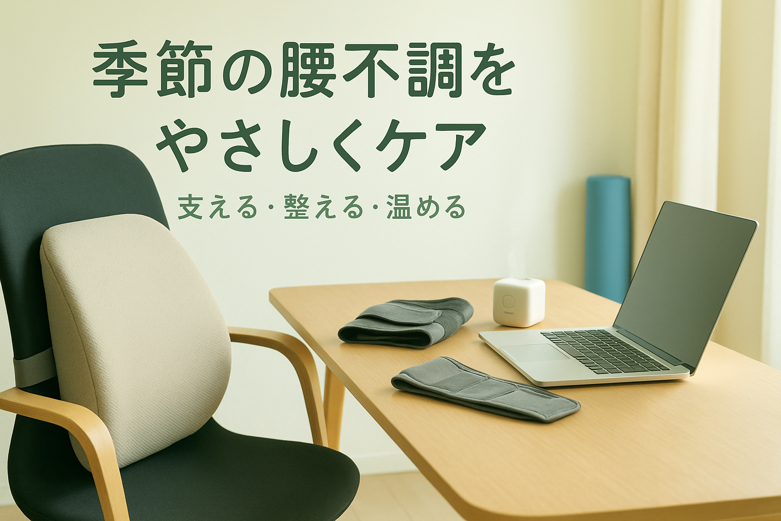 朝晩の寒暖差が大きい季節は、体がこわばりやすく「腰が重い」「同じ姿勢がつらい」と感じる方が増えます。通院の合間や家事・仕事の合間にできるセルフケアを用意しておくと、毎日の負担が少しラクになります。本記事では、装着して支える・座って姿勢を整える・温めてほぐす・やさしく刺激を与える——といった視点で、続けやすい腰ケア用品を5つご紹介します。無理なく取り入れて、季節のゆらぎを乗り切りましょう。